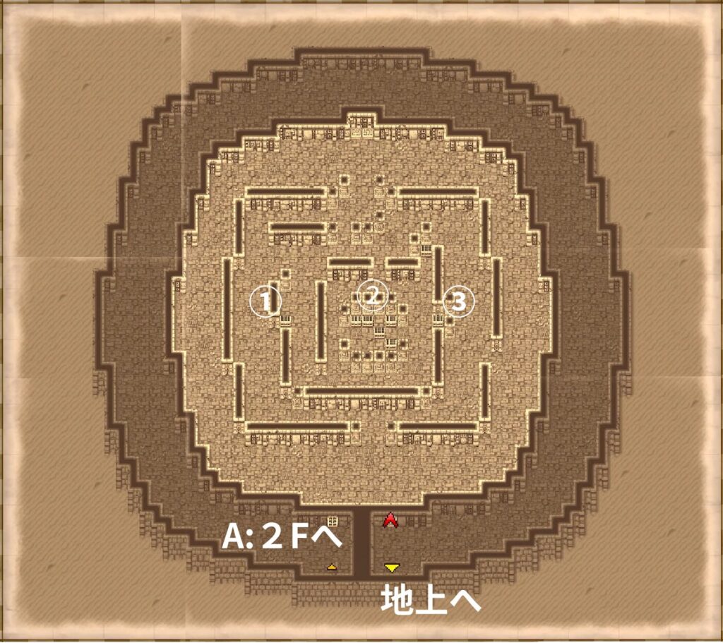 ③:宝箱→6400ギル、服、守りのマント、金の針、9500ギル、8135ギル