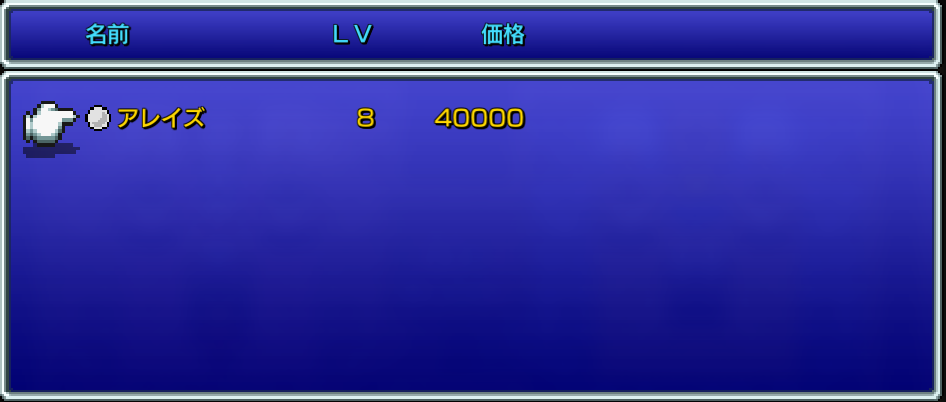 • アレイズ:味方1人の戦闘不能状態を治しHPを全回復する