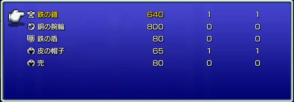 ちなみに、道具屋で売っているアイテムってどの町も共通。
