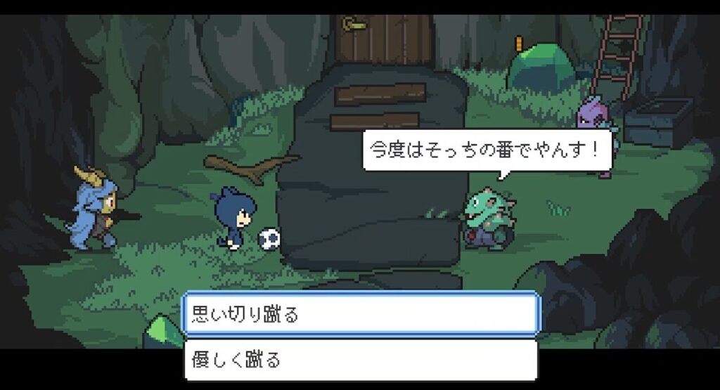 「優しく蹴る」→うまくパス返して遊び終了。
