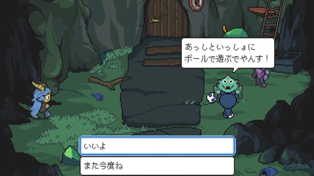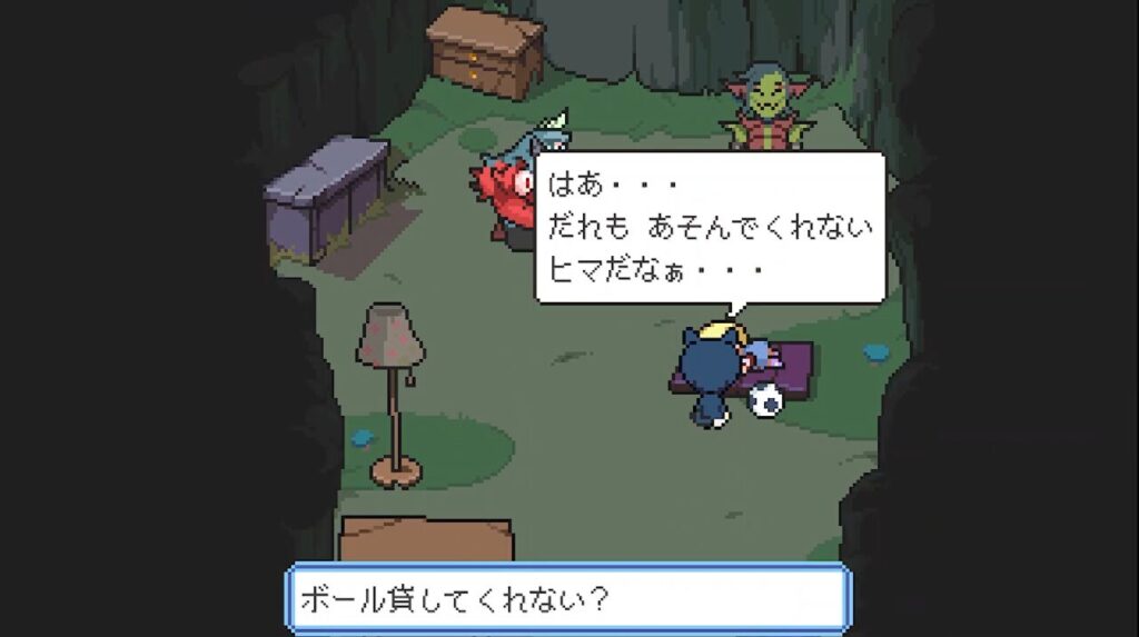 ねぇねぇ、ボール貸してくれない?外の魔物さんがボールあそびしてみたいんだって。ボールあそびしたらストーリーが進むと思うのー。笑