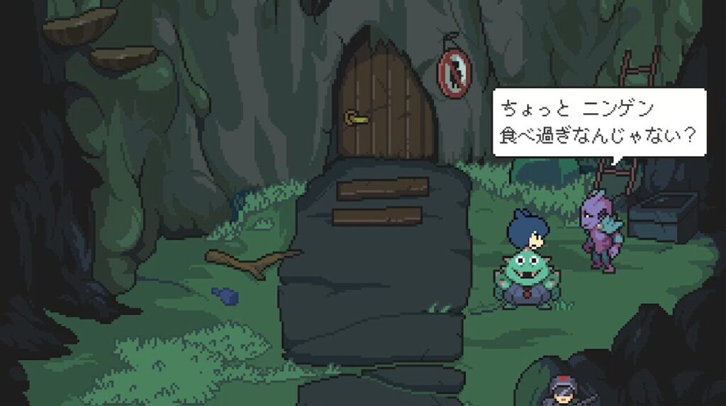 この魔物さんは、少年からニンゲンのニオイがめっちゃするって言っております。え?・・・ニンゲン食べ過ぎ?・・・。(@_@;)タベスギ?