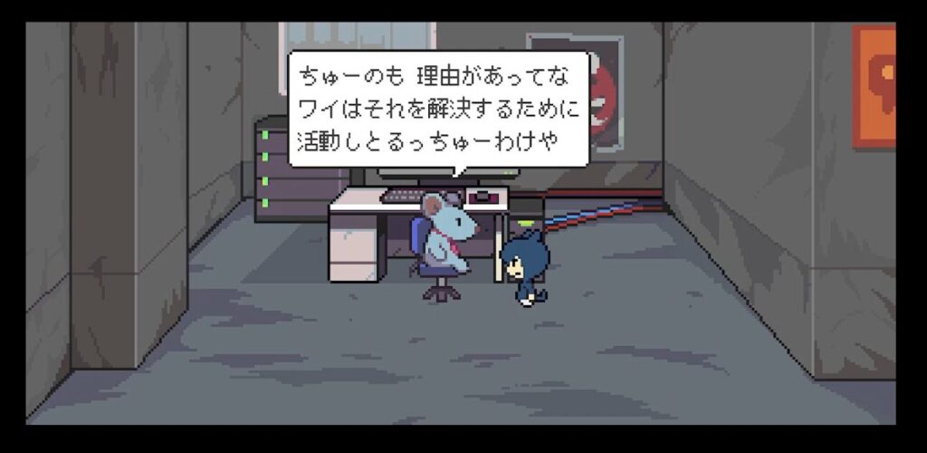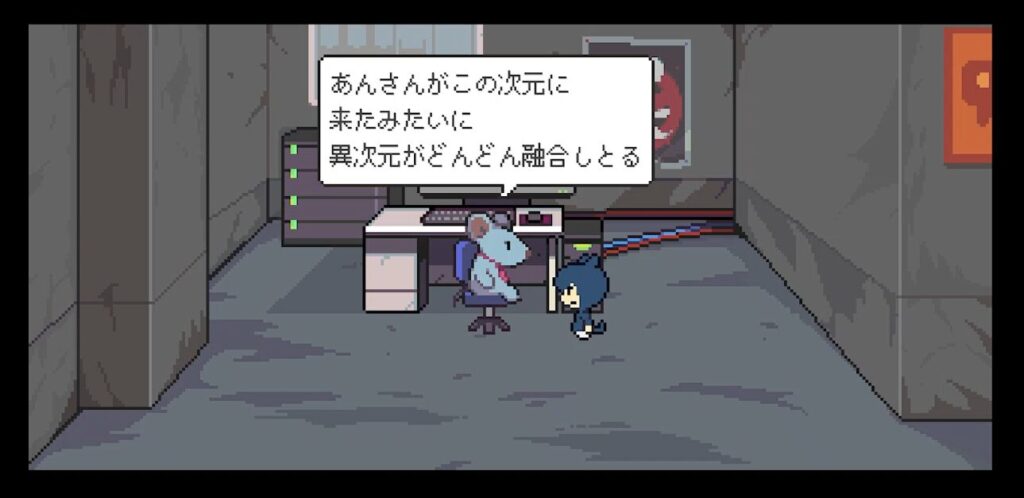 このネズミさんがおっしゃるには、少年は異次元から飛ばされてきたようです。かわいい姿ですがネズミさんから見て少年は”人間”とのことなので、種族が変わったとかではなさそう。