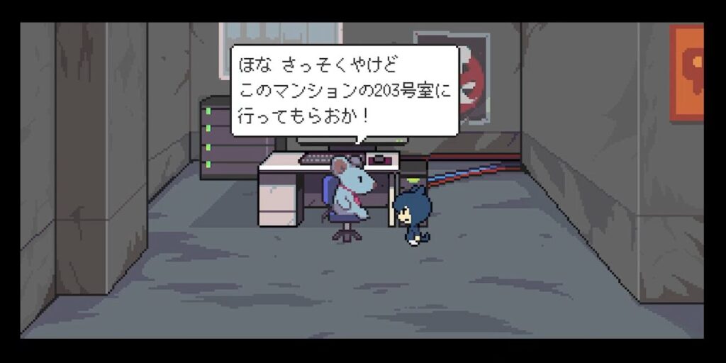 さて、さっそく203号室に向かえとの指示が。扉の向こうが別の次元につながってしまっているそうです。