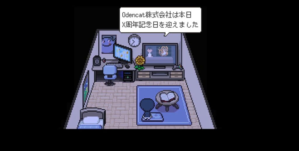 テレビではOdencat株式会社が本日でX周年を迎えたというニュースが流れていました。Odencatはケリーが好きなゲーム会社のようです。ケリーに勧められたゲームのタイトルが思い出せず、パソコンで調べることに。